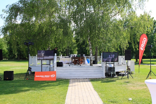 Kaštieľ v Tomášove je nepochybne krásny priestor, no je priam stvorený na eventy, ktoré majú byť aj čiastočne pod holým nebom. Jeden takýto event sme technicky zabezpečovali s firmou X-Tech a takto to tam vyzeralo. Prítomý hostia mohli ochutnať prvotriedne vína, pozrieť si módnu prehliadku a aj výstavu malieb.