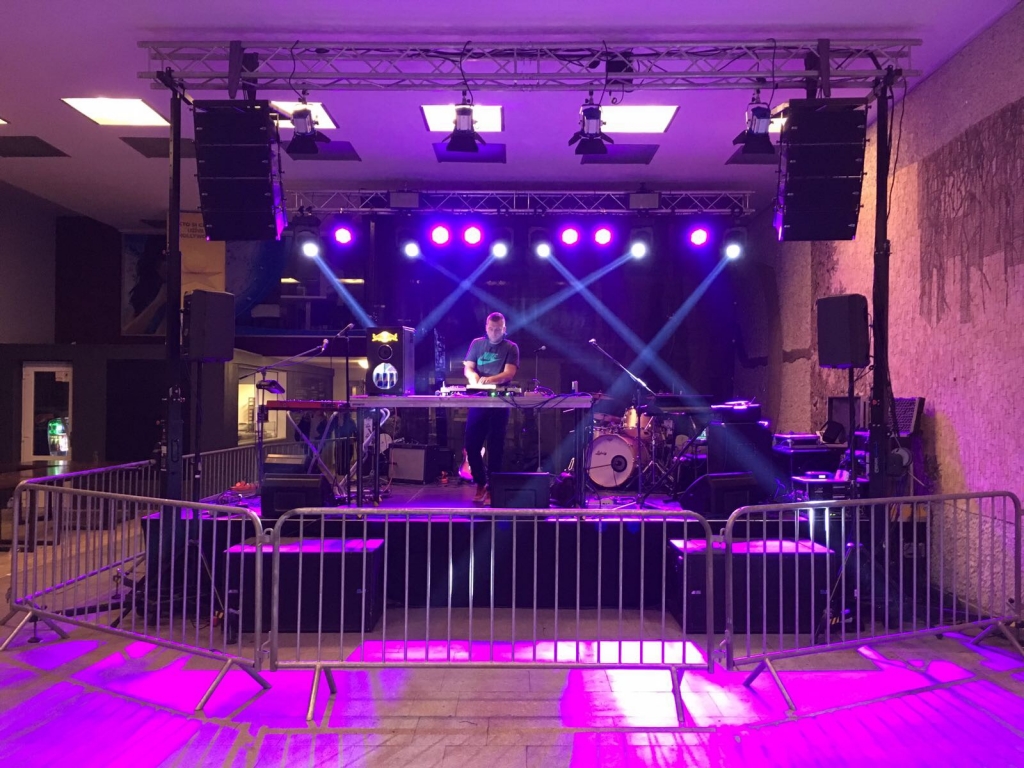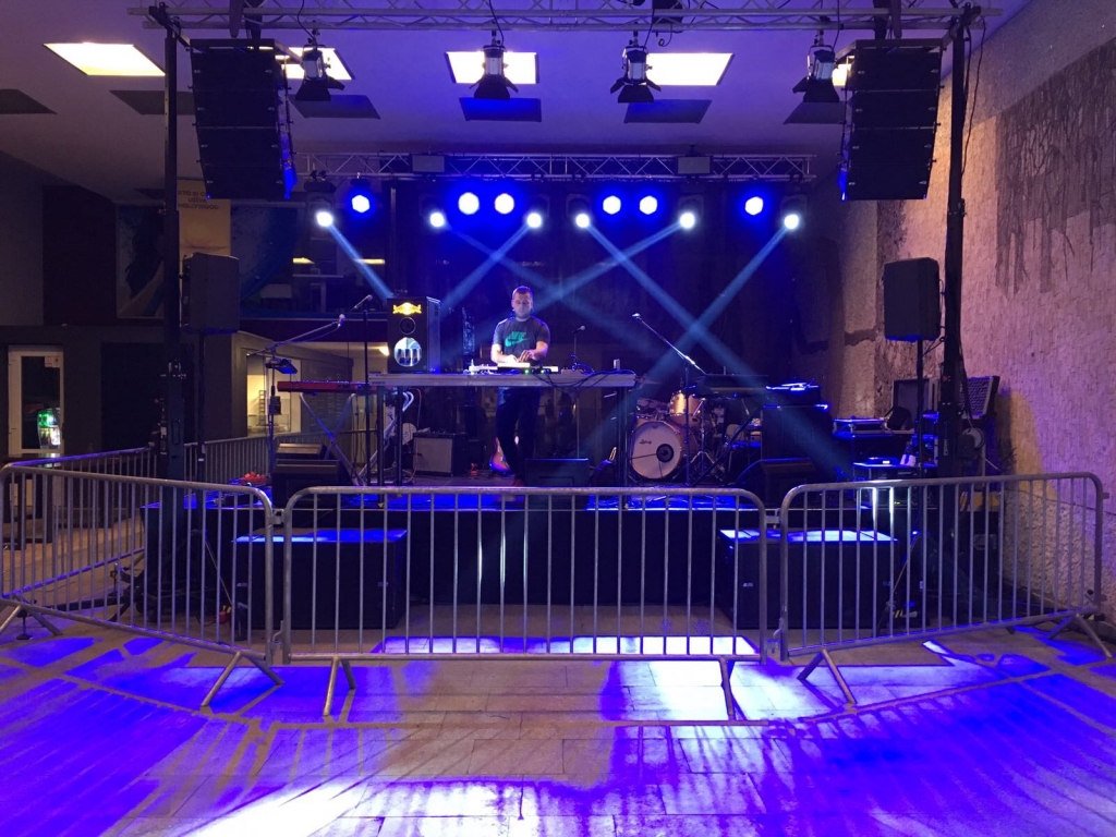 Takto vyzeral náš stage na Amos fest v indoor verzii na internátoch v bratislavskej Mlynskej doline.