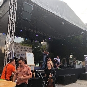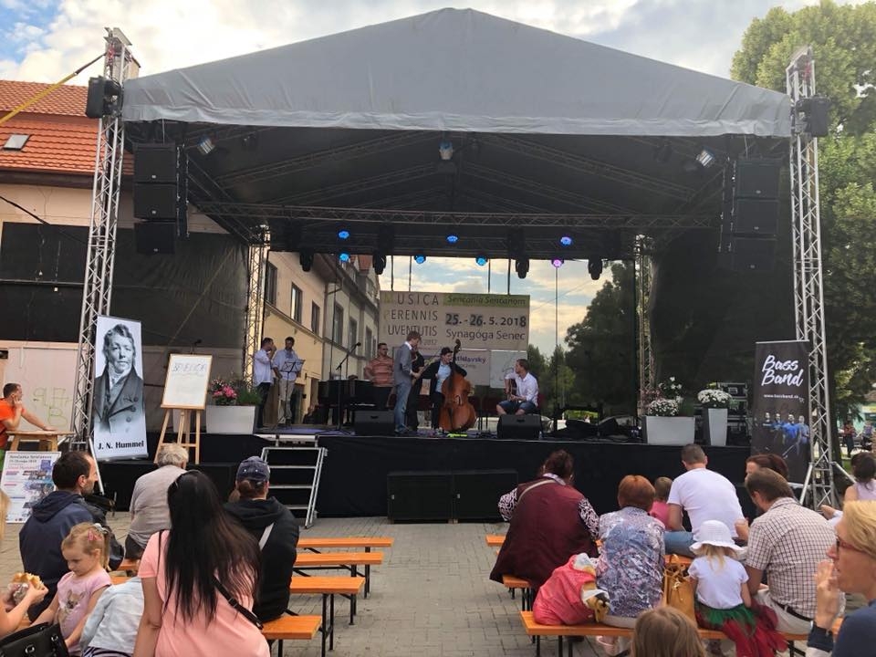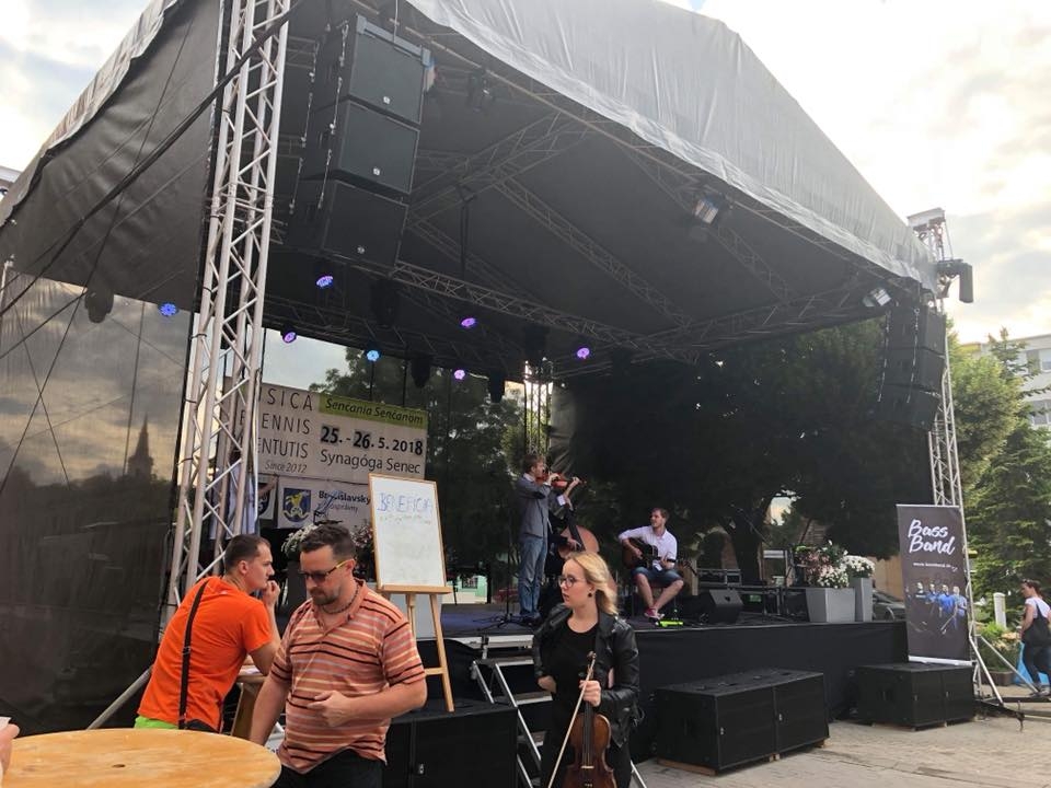 Nočná stavba v Senci na pešej zóne môže na druhý deň vyzerať ako koncerty vážnej hudby. Postavili sme stage a Lasa sa postarala o svetlo a zvuk.